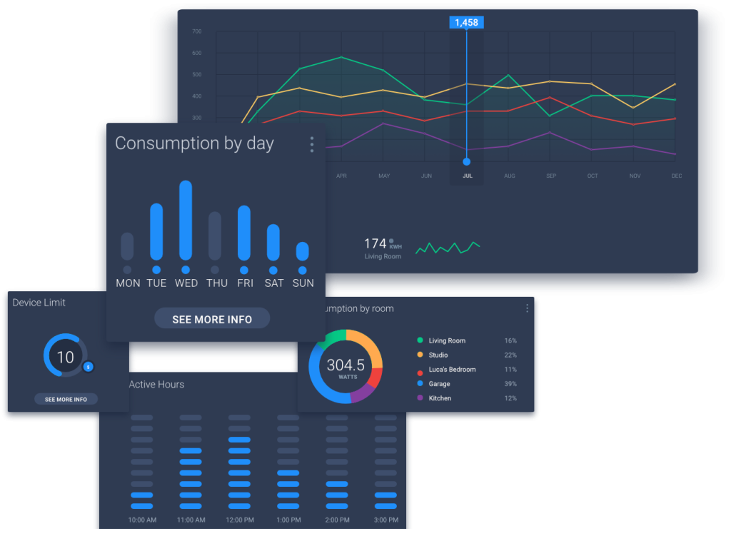 Track energy usage, monitor device performance, and visualize activity across your entire home in real time. Clear charts and insights help you understand patterns, optimize efficiency, and make smarter decisions effortlessly.
